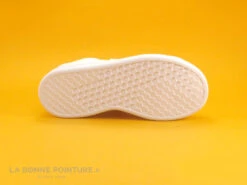 La semelle de marche des chaussures blanches Adidas enfant est souple avec Adidas en relief sur la tranche.