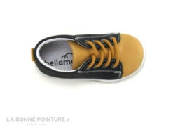 Le lacet arrondi jaune traverse 4 oeillets et permet d’ajuster la chaussure Bellamy Dakar au peton de votre bout’chou.