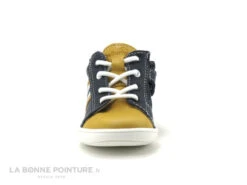 Cette chaussure montante garçon Bellamy Rafal est en cuir jaune curry et bleu marine, avec une petite touche de blanc.