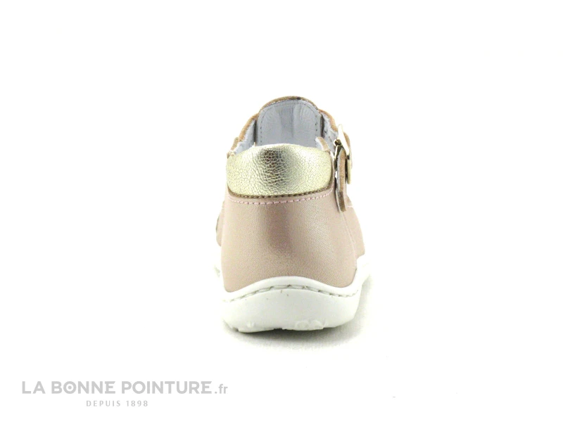 Son petit pied sera confortablement maintenu dans cette chaussure entièrement en cuir très souple rose métallisé.