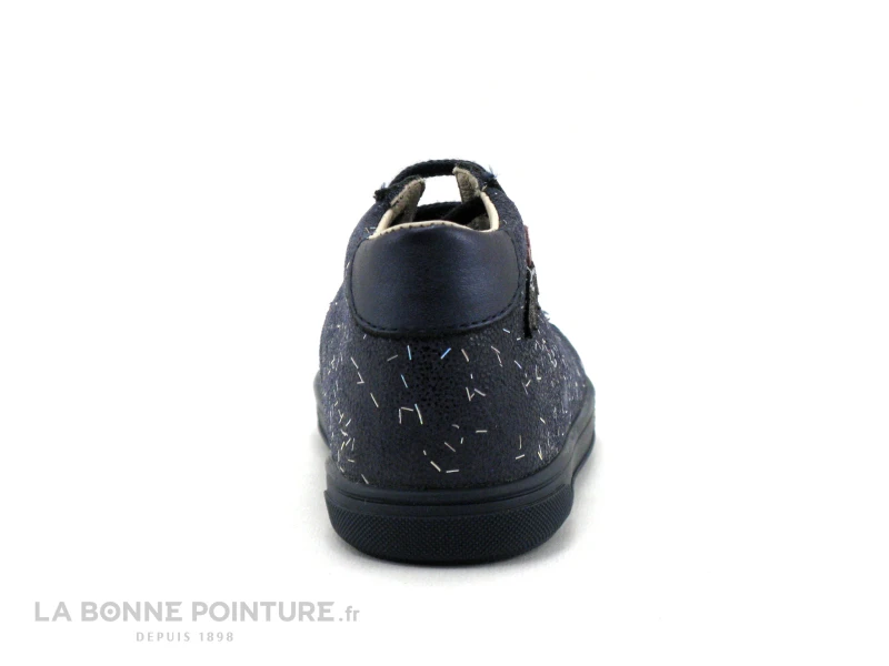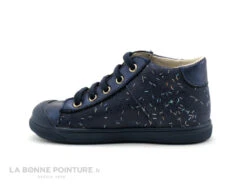 Cette chaussure montante Bopy combine un cuir lisse bleu mĂ©tallisĂ© et un cuir bleu marine parsemĂ© d’une pluie de paillettes argentĂ©es…