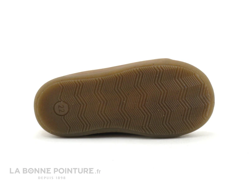La semelle de marche des bottillons bébé Bopy se démarque avec son aspect légèrement translucide et moucheté, avec renfort de protection sur la pointe.