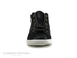 Ces belles baskets montantes bébé fille Bopy Restar sont en cuir velouté noir, facile à associer avec toutes les tenues de votre demoiselle !
