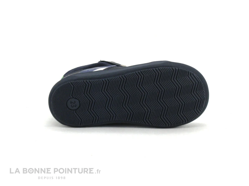 La semelle de marche du bottillon bleu marine premiers pas Bopy Rintage est souple avec renfort de protection sur la pointe.