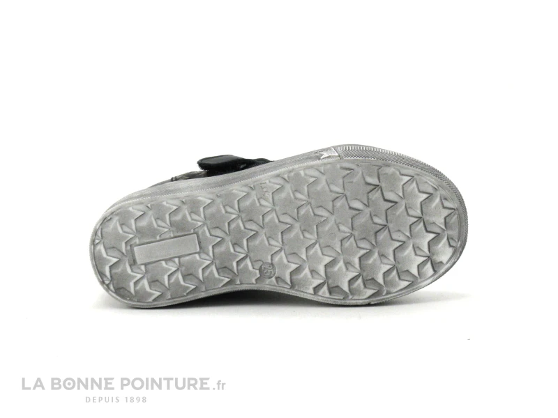 Cette basket montante fille Bopy mélange un cuir lisse noir avec un cuir imprimé or sur les côtés.