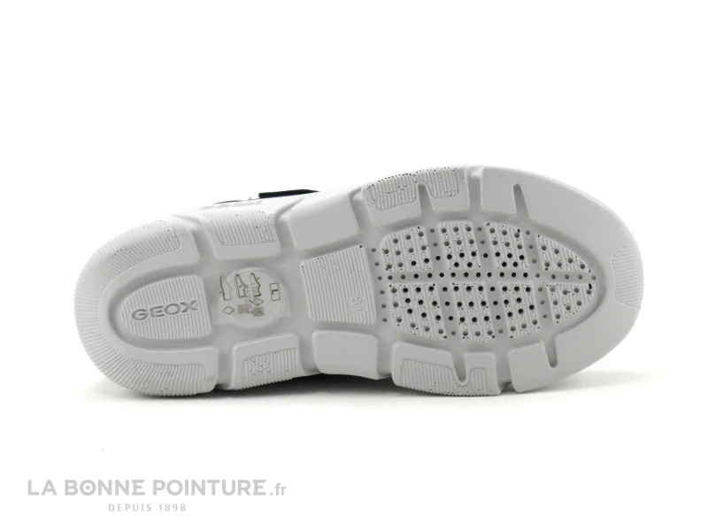 La semelle de marche des sneakers Geox fille est perforĂ©e afin de laisser l’air circuler autour du pied de l’enfant, il s’agit du système Geox Respira.