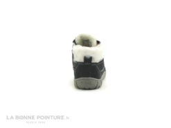 Ce bottillon fourré fille est en cuir velours gris foncé, avec un peu de rose sur la languette et de la fourrure blanc cassé sur le haut.