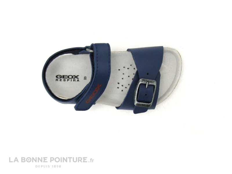 Cette sandale enfant Geox est en simili cuir bleu marine, pour s’associer parfaitement avec toutes les tenues d’Ă©tĂ© de bĂ©bĂ© !
