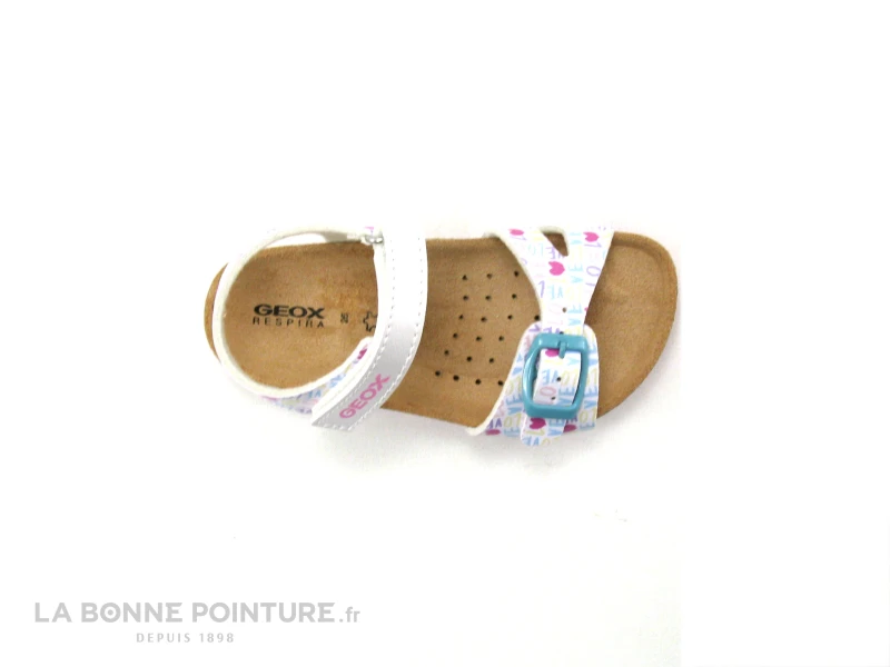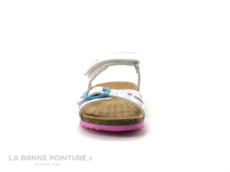 Les sandales fille blanches et multicolores Geox Chalki B922RA, de nu-pieds bébé fille de qualité pour les premiers pas de votre demoiselle !
