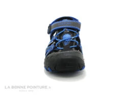 Ces nu-pieds enfant Geox Respira sont en textile et matières résistantes, aux tons de bleu, de noir et de gris.