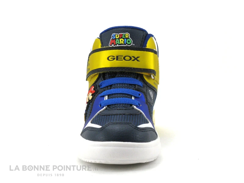 Cette basket montante Geox Super Mario s’enfile facilement grâce aux Ă©lastiques bleus, pas de lacet Ă nouer !