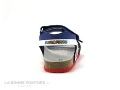 Ces sandales anatomique enfant Geox Mario sont bleu marine et bleu royal, avec les deux super-héros sur fond blanc sur les côtés : Mario sur la chaussure droite et Luigi sur le nu-pieds gauche.