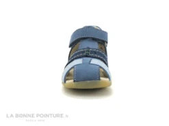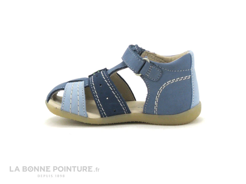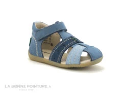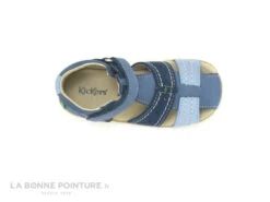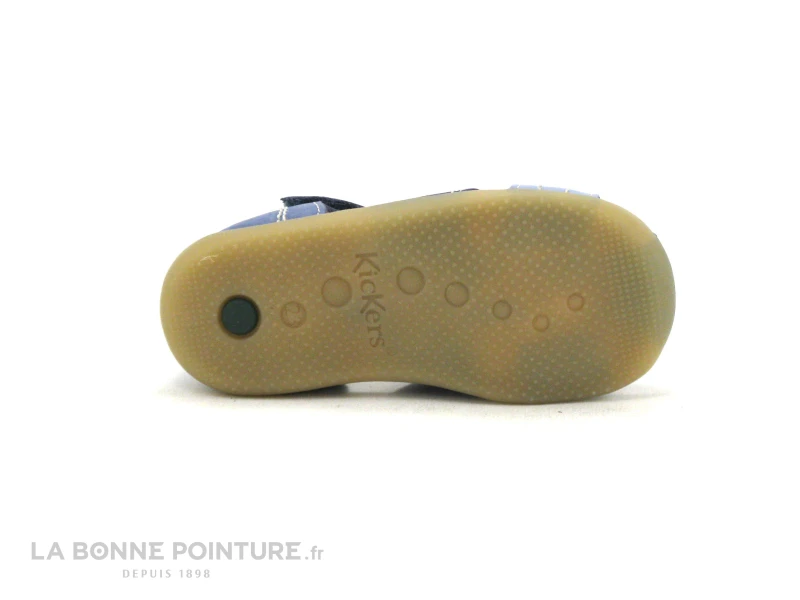 Cette sandale bébé Kickers Bigbazar est fabriquée avec un beau cuir velouté bleu tricolore.
