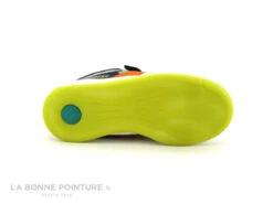 Cette basket basse garçon mĂ©lange cuir, textile et matières synthĂ©tiques rĂ©sistantes, aux tons de bleu marine, de gris et d’orange.
