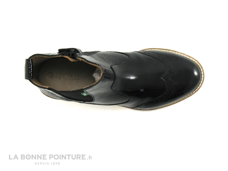 Les bottines fille en cuir noir verni Kickers Tylda, des boots fille Kickers de grande qualité pour la saison automne Hiver !