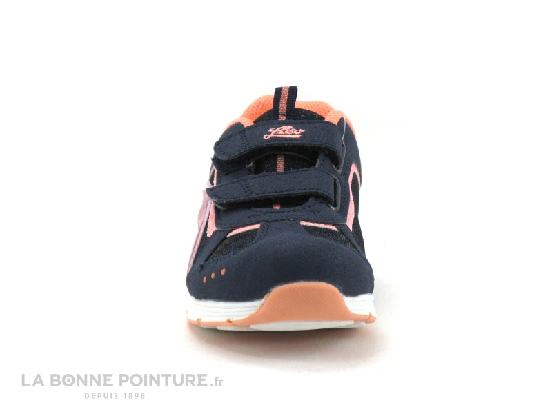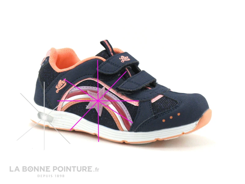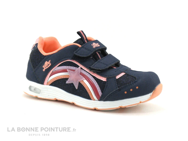 Cette sneakers leds fille Lico est bleu marine et rose, avec des parties veloutées et pailletées.