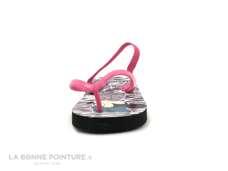 Pratique, l’Ă©lastique fuchsia Ă l’arrière des claquettes Disney Minnie Mouse, pour mieux maintenir le pied dans la chaussure.