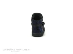 Ce bottillon fille est bleu foncĂ©, avec l’arrière brillant et pailletĂ©.