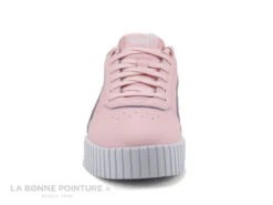 Le lacet rose traverse 6 oeillets afin de fermer efficacement la chaussure rose Puma Carina.