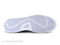 La semelle de marche de la basket noire Puma Smash est en caoutchouc blanc, elle est souple avec Puma en relief sur la tranche.