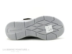 Le lacet Ă©lastique noir permet d’enfiler rapidement la basket enfant Skechers Texlor, qui se ferme avec la bride velcro.