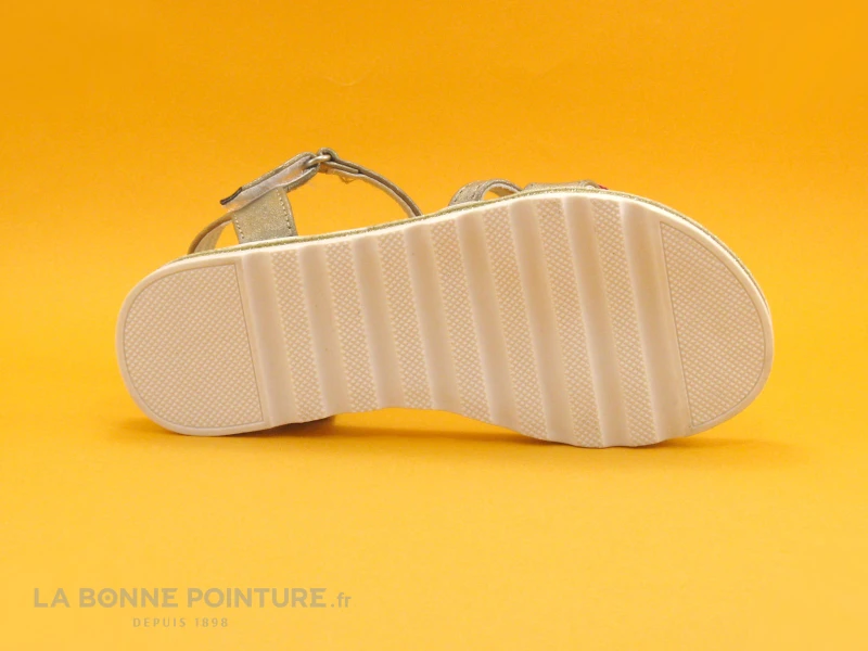 La semelle de marche des sandales est blanche, avec des paillettes dorĂ©es sur le pourtour…