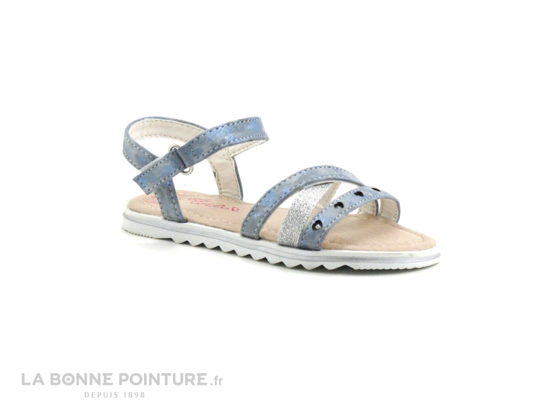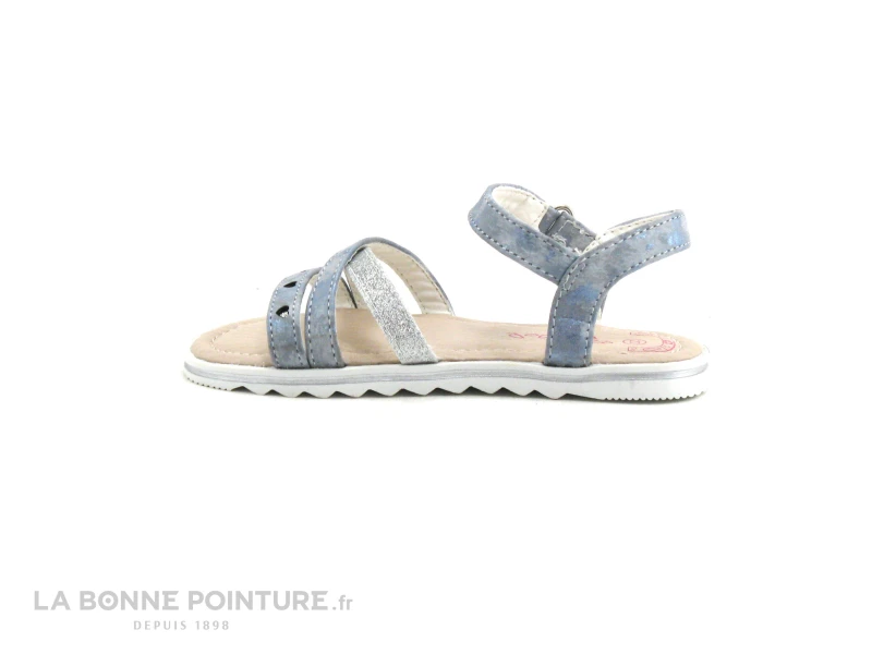 Pour les fillettes en été, les nu-pieds bleu clair et argent Wipop Ymos !
